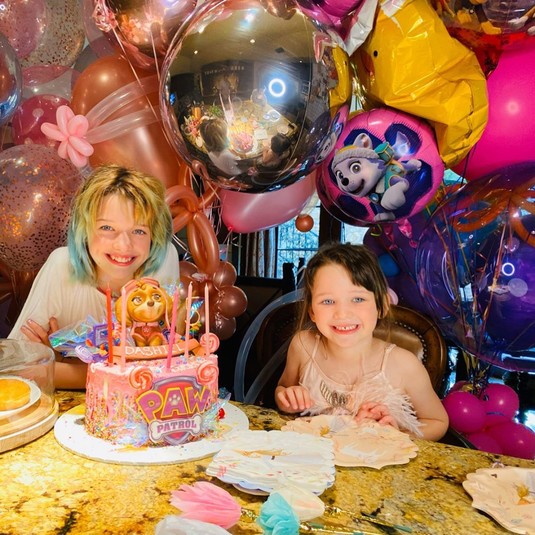 44-летняя голливудская актриса Милла Йовович и ее семья уютно отметили пятилетие средней дочки Дэшиел. В праздничный день 2 апреля многодетные родители устроили любимой наследнице домашнюю сказку: ребенка наградили большим, именным, разноцветным, сказочным тортом со свечками и обилием ярких воздушных шаров. Десерт был украшен мастикой, героем из любимого Дэшиел мультика «Щенячий патруль», вкраплениями съедобной бижутерии, а также блестящей свечкой в форме цифры пять.