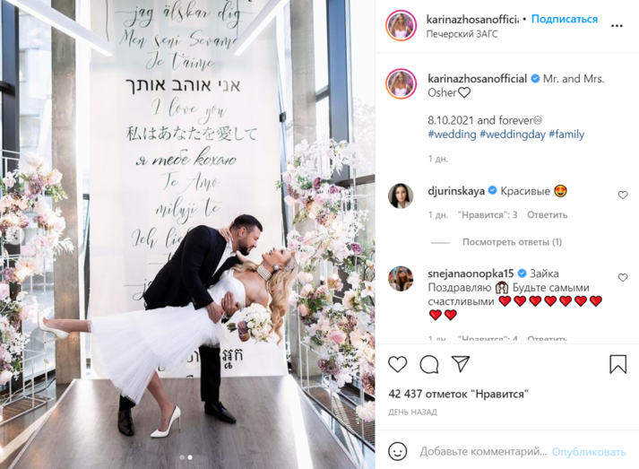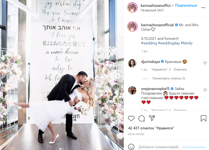 Модель Карина Жосан, мисс «Украина Вселенная-2018», расписалась со своим возлюбленным в Киеве. Его личность украинка не разглашает, но известно, что фамилия супруга – Ошер (Osher).