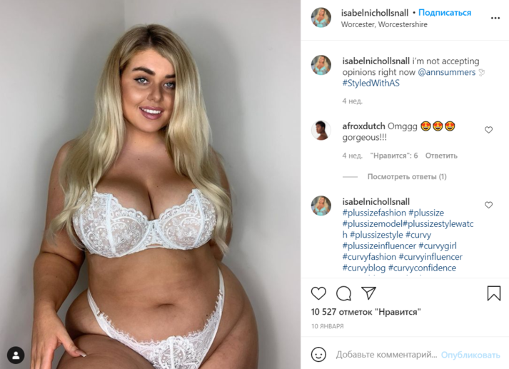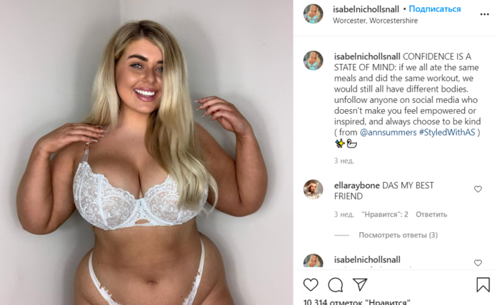 Британская плюс-сайз-модель Иззи Николс из Вустершира является живым доказательством того, что можно быть привлекательной при любом типе фигуры. Девушка постоянно демонстрирует в Инстаграме фото в откровенных нарядах и нижнем белье, которые только подчеркивают ее пышные формы, пишет Daily Star.