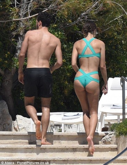 Красавица перед выходом на красную дорожку понежилась на пляже в соблазнительном бирюзовом купальнике, который выгодно демонстрировал ее прелести.