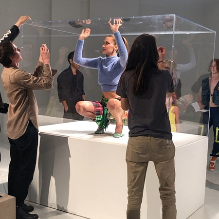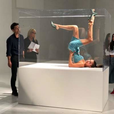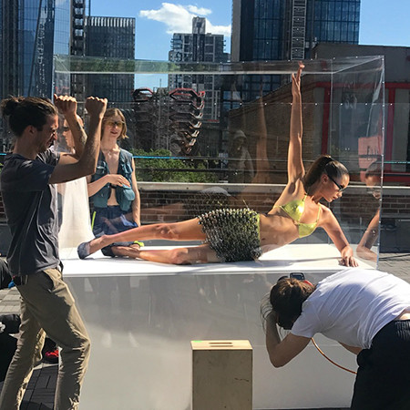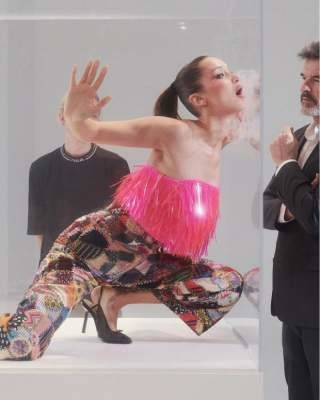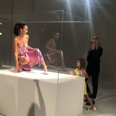 Новые снимки опубликовал журнал Pop на своей странице в Instagram. Автором фотосессии стали стилист Шарлотта Коллет и фотограф Шарлотта Уэльс. На фотографиях Белла Хадид изображает экспонат в выставочном зале и находится в стеклянном «аквариуме».