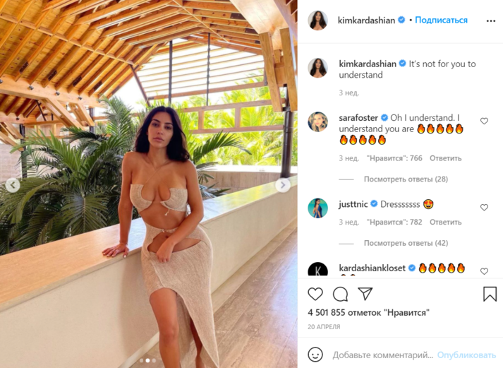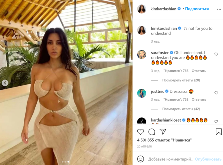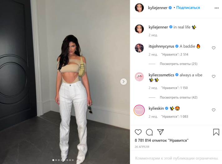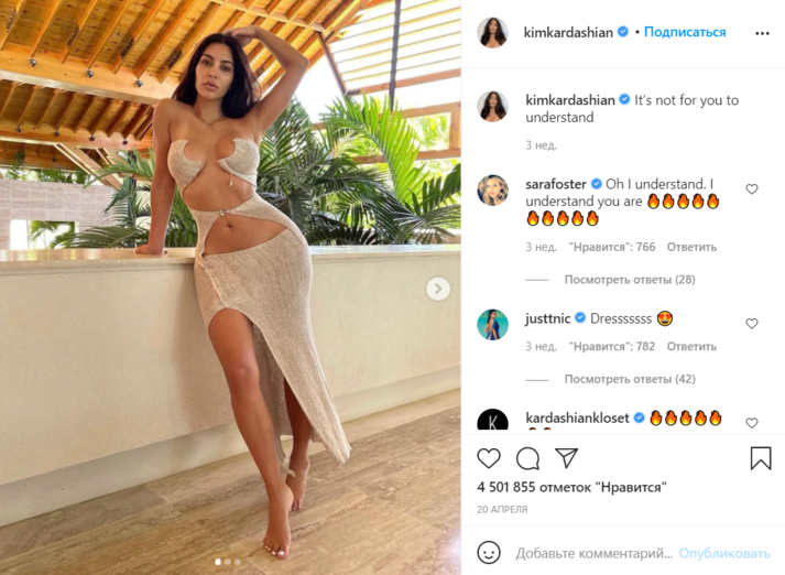 Так, например, 23-летняя Мосс попала в объектив папарацци во время прогулки по Лондону. Она была одета в рваные джинсы и боди белого цвета с завязками на шее и широким вырезом, частично оголяющим ее грудь. В свою очередь, предпринимательница и телезвезда Ким Кардашьян порадовала поклонников фотографией в бежевом трикотажном платье, верх которого обнажает зону декольте, талию и живот.