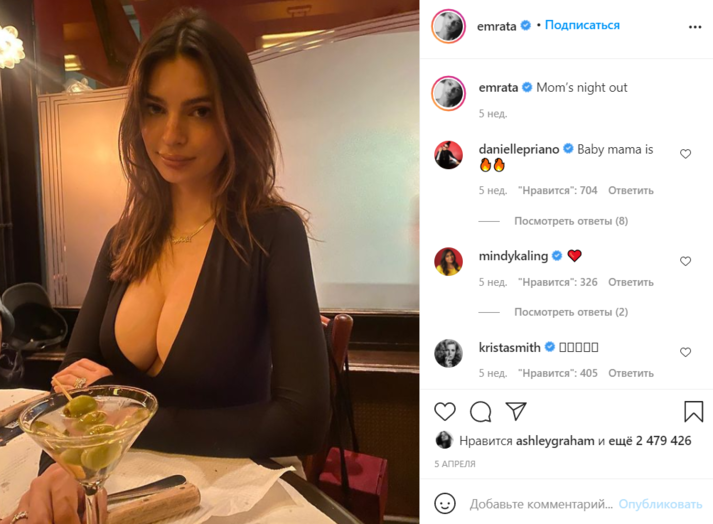 Ратаковски поделилась снимком в Instagram, на котором она запечатлена в облегающем черном топе