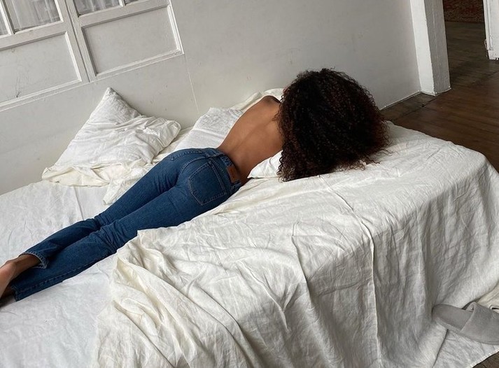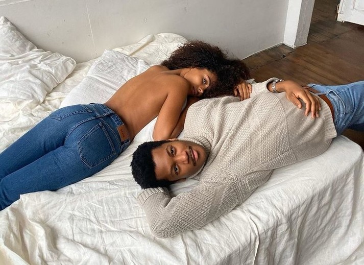 Модель в полураздетом виде позировала в постели с другим мужчиной