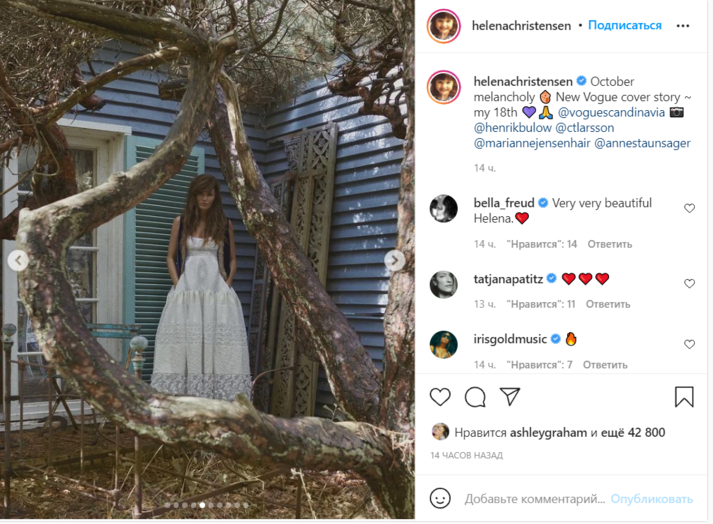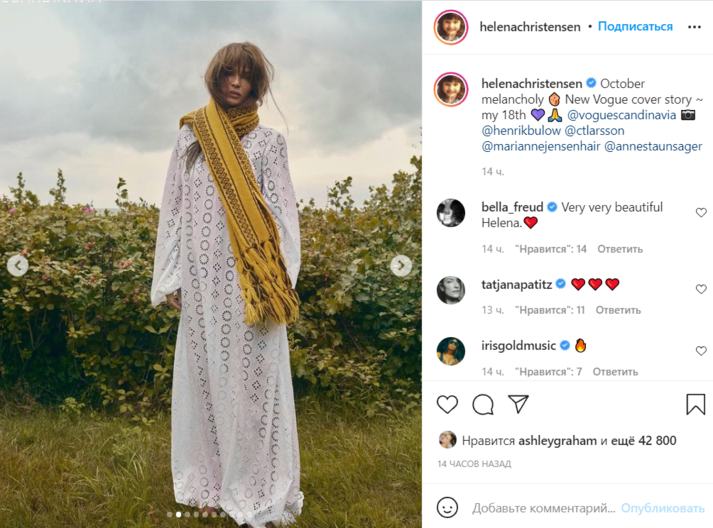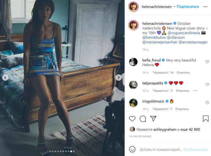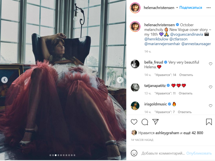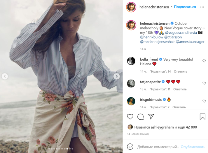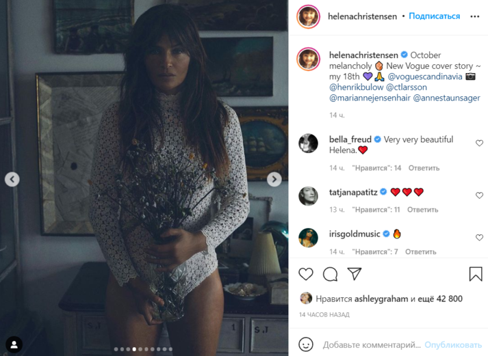 Датская супермодель Хелена Кристенсен (Helena Christensen) приняла участие в новой откровенной фотосессии для обложки скандинавской версии модного журнала Vogue и взволновала поклонников. Соответствующая серия снимков появилась на ее странице в Instagram.