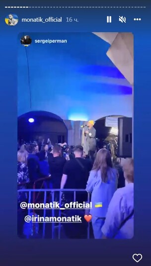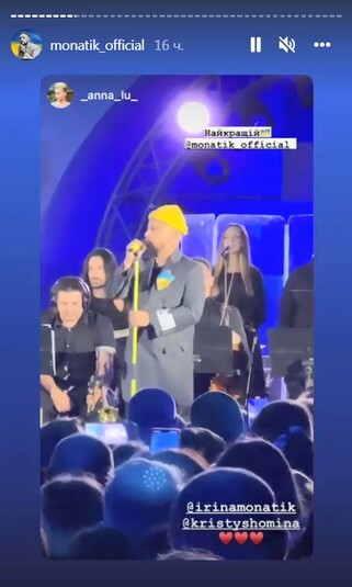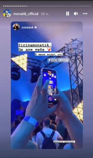 Выступление получилось невероятно теплым. Видно было, что певец очень счастлив, что вернулся домой. Одну из песен Монатик посвятил жене Ирине, которая с сыновьями находится в Испании. Артист написал: «Ирина, это для тебя! У меня мокрые глаза».