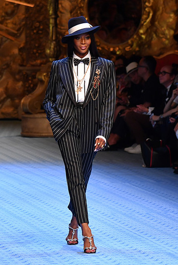 Но на этом сюрпризы не закончились. Следом за Беллучи на подиуме появилась черная пантера fashion-индустрии Наоми Кэмпбэлл и еще одна любимца бренда - Марпесса Хеннинг. Обе также предстали в брючных костюмах, подчеркивающих две главные идеи бренда: взаимозаменяемость женской и мужской моды и семейные традиции.