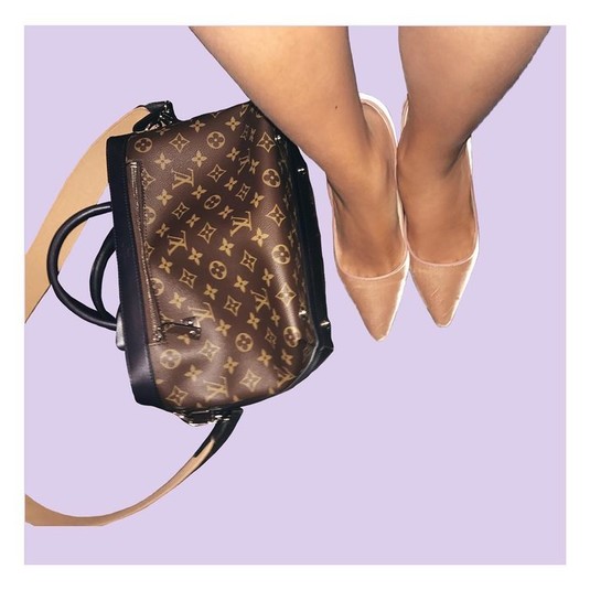 Завершили наряд звезды замшевые бежевые туфли-лодочки и небольшая сумка Louis Vuitton.