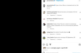 На звезду сериала «Интерны» составили протокол об административном правонарушении – об этом пишет один из российски сайтов, ссылаясь на свои источники. Актрисе грозит немалый денежный штраф. На днях в один из районных судов Москвы поступило дело об административном правонарушении в отношении Кристины. Звезду обвиняют по статье «дискредитация Вооруженных Сил РФ». Заседание по делу назначено на 6 сентября 2022 года. Асмус грозит штраф до 50 тысяч рублей (приблизительно 30 тысяч гривен). Недавно по этой же статье был оштрафован лидер рок-группы ДДТ Юрий Шевчук, который на одном из концертов заявил, что «Родина – это не ж#па президента».