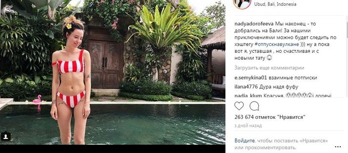 Вместе с мужем Владимиром Дантесом Надя улетела на Бали. Фотографиями со сказочного отпуска и рассказами супруги делятся в соцсети.
