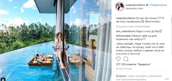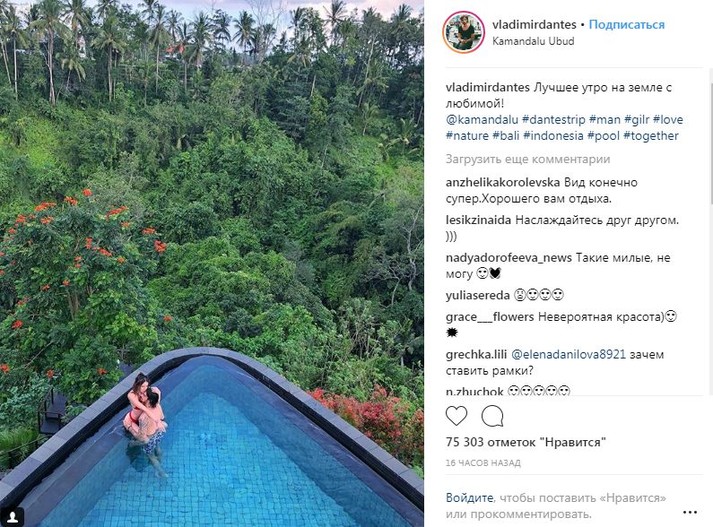 Надя Дорофеева и Владимир Дантес поделились снимками с роскошного отдыха на Бали