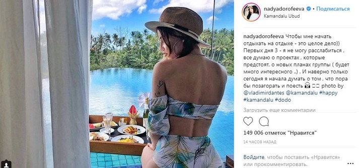 «Чтобы мне начать отдыхать на отдыхе - это целое дело)) Первых дня 3 - я не могу расслабиться , все думаю о проектах, которые предстоят, о новых планах группы (будет много интересного). И наверно только сегодня я начала думать о том , что пора бы позагорать и поесть», - призналась Дорофеева.