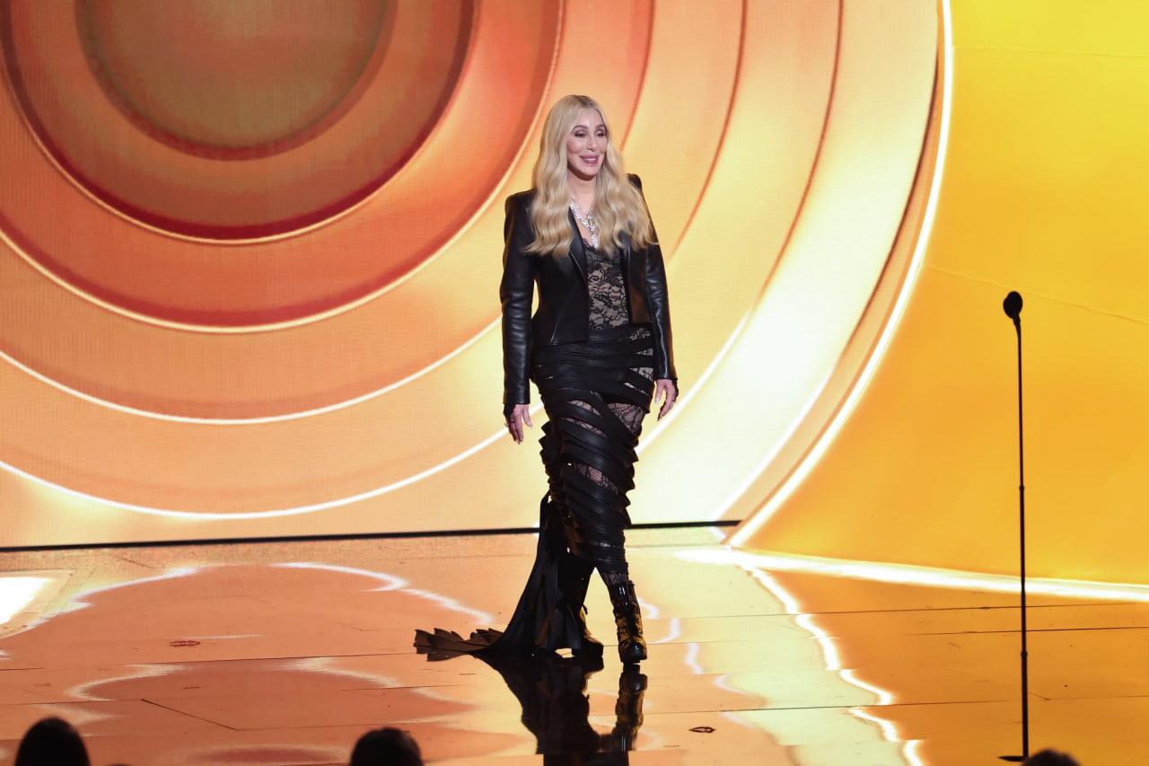 «Греммі» відвідала 79-річна американська співачка Шер. На сцену премії співачка вийшла у нестандартній сукні зі шкіряними елементами. Довгі шкіряні стрічки обгорнули ноги зірки, а під шкіряними елементами виднілася гіпюрова основа сукні. Також співачка одягла чорні підбори. Поява 79-річної ікони після 18 років відсутності на сцені премії викликала тривалі овації.