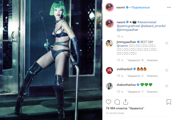 Звезда мировых подиумов смотрелась в таком образе очень органично и привлекательно. Наоми в очередной раз доказала, что в ее случае возраст – только отметка в паспорте.