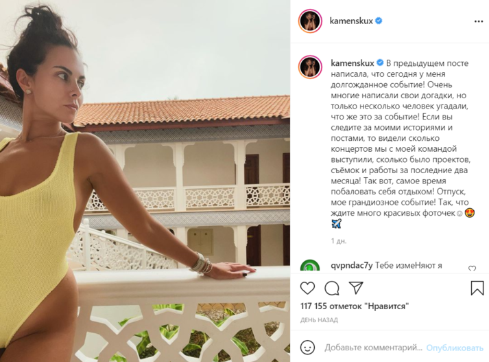 Пользователям сети понравился пикантный снимок Каменских в откровенном купальнике. Многие оставили приятные комментарии под публикацией, отметив, что артистка выглядит очень хорошо.