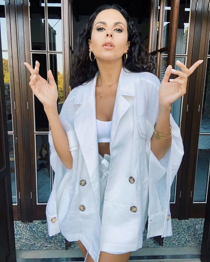 33-летняя певица Настя Каменских позировала во дворе загородного дома. Настя выбрала эффектный образ в стиле total whitе. Артистка предстала в топе-бра и мини-шортиках, которые сочетала с объемной рубашкой и босоножками на небольшом каблуке.