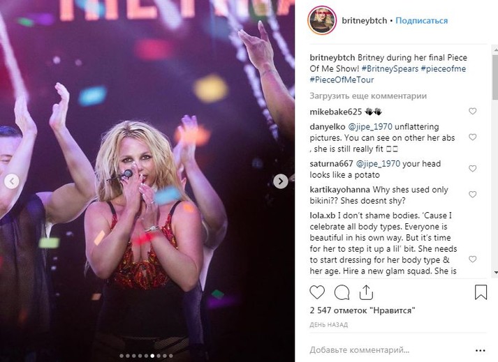 Стоит отметить, поклонники остались от образов не в восторге. Сразу после концерта пользователи социальных сетей разделились на два лагеря. Одни обвиняли Спирс в лишнем весе, одежде не по возрасту и плохой хореографии, другие пытались встать на защиту кумира, пишет popcornnews.