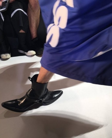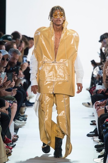 Сразу стало понятно, что дефиле будет очень необычным: модели шагали по подиуму полностью в вазелине (без шуток, он даже с них капал), а некоторые — с обнаженной грудью. Коллекция тоже была экстравагантной — в нее, например, вошли куртки-кофры для одежды и двойные сапоги. Посмотреть необычный показ пришли Вупи Голдберг, Наоми Кэмпбелл, Джейден Смит и другие знаменитости. А вы говорите, Канье Уэст немного странный.