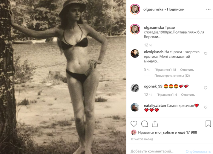 «Волшебная», «Бешеная красавица тогда и сейчас», «Как же прекрасна молодость. Красотка», «Ольга, скажите пожалуйста как Вам удается все время держать себя в такой безупречной форме? Буду Вам благодарна за ответ!», «Невероятно красивая», «Прекрасная женщина, талантливая актриса !!!!», - пишут восторженные фанаты.
