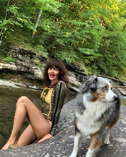 На размещенных фото 51-летняя знаменитость запечатлена на фоне природы в леопардовом костюме с собственным портретом на груди. Она дополнила свой образ черными ботильонами на каблуках. Также Кристенсен поделилась фотографиями из молодости, на которых она позирует в описанном боди.