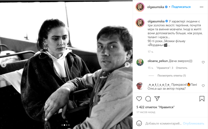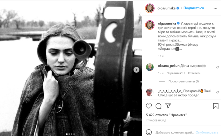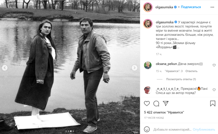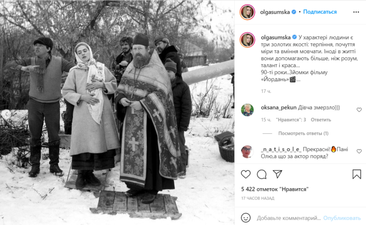 Звезда украинского кино Ольга Сумская в своем Инстаграме опубликовала архивные фото начала 1990-х со съемок фильма «Иордань» режиссера Александра Игнатуши, где она сыграла одну из главных ролей.