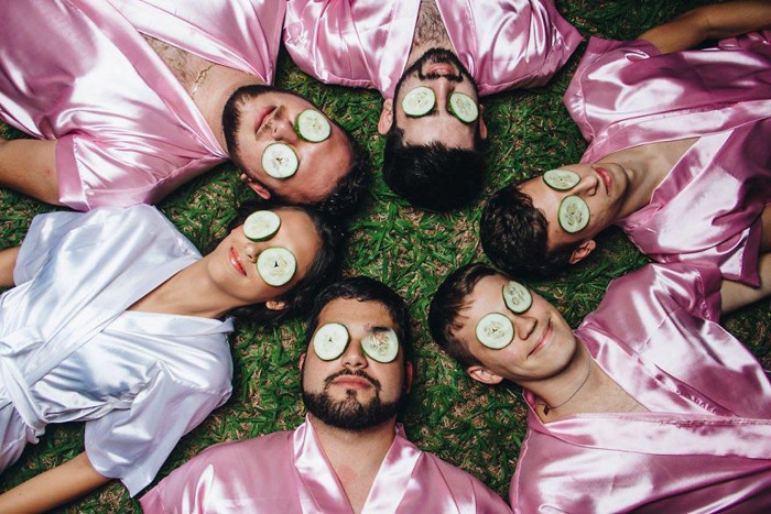 Тогда девушка пригласила своих друзей-айтишников. Они живо поддержали будущую невесту и согласились на такой хулиганский проект. Парни нарядились в шелковые халатики, купили дешевый алкоголь, пластиковые стаканчики - все по-мужски, по-братски, всё как для себя - и принялись позировать для фотосессии. «Иногда мы так сильно смеялись, что приходилось брать паузу, прежде чем продолжить фотографироваться», - признается девушка.