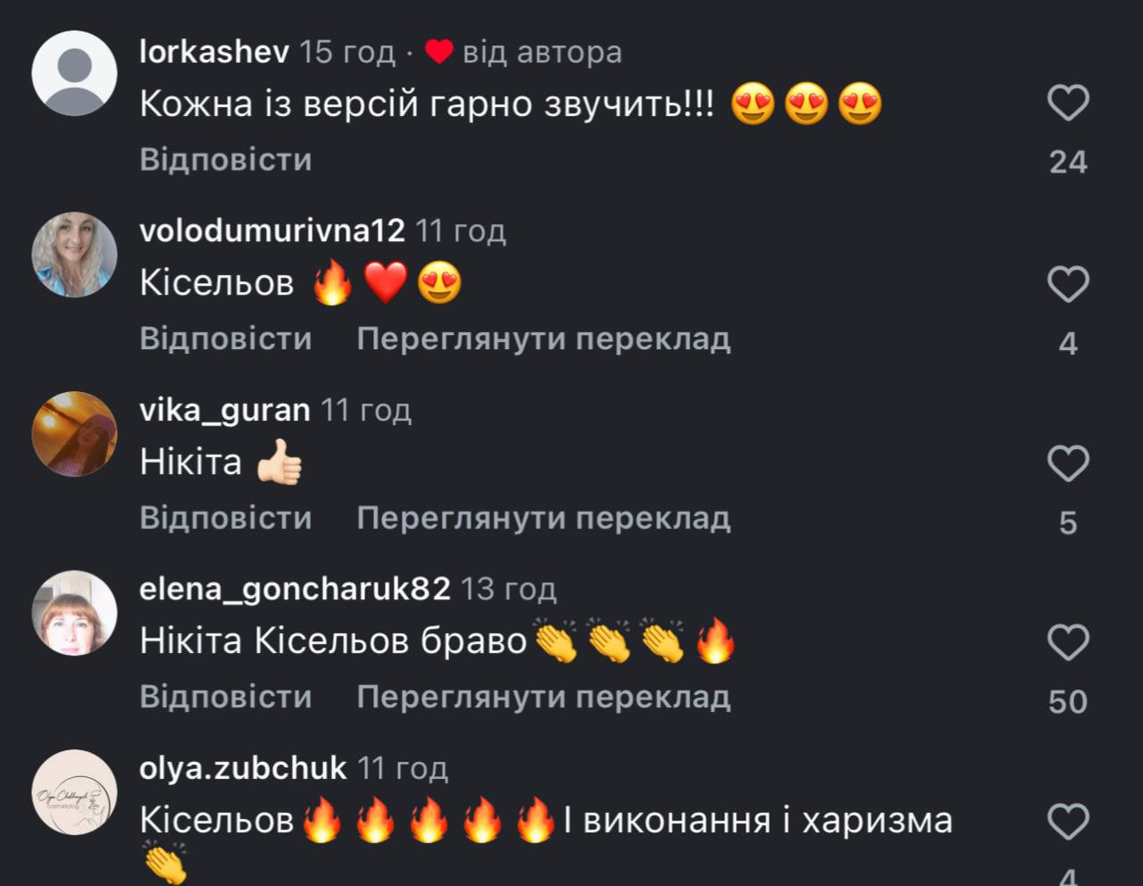 - «Дуже гарне виконання! Молодець!»