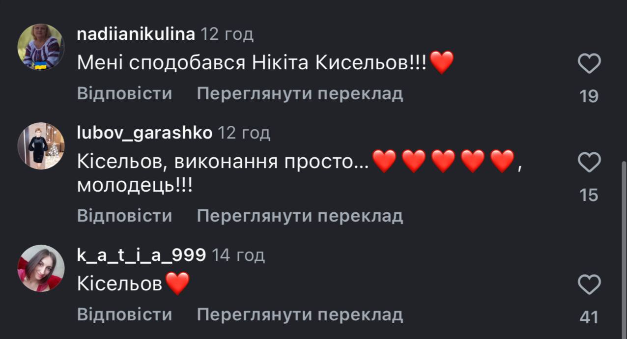 Відеозаписом свого виступу поділився і сам Нікіта Кісельов на своїй сторінці у Facebook. Під цим дописом українці також оцінили виконання співака пісні Степага Гіги та поділилися своїми враженнями: