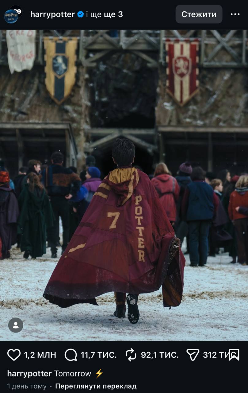 На Плащі Гаррі Поттера видніється його ім’я та його номер сім, як гравця Квідичу. У коментарях під цим фото користувачі іноземної аудиторії були вражені. Фанати фільмів про Гаррі Поттера залишили різноманітні коментарі та загалом раділи поверненню фільму та його героїв на екрани. До слова, це фото зібрало понад мільйон вподобайок.