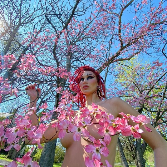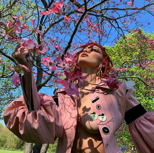 23-летняя модель Белла Хадид снялась топлес на фоне цветущего дерева