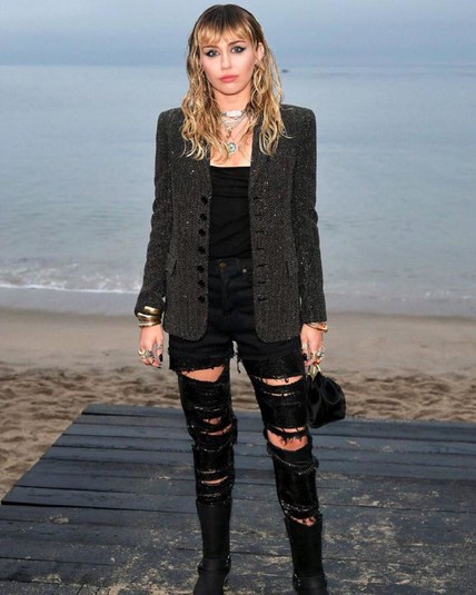 Гостями вечера также стали Майли Сайрус и Лиам Хемсворт, Эмбер Херд, Хейли Болдуин и другие звезды. Майли выбрала для выхода дерзкий и эффектный наряд: рваные джинсы, топ и жакет. Ее муж Лиам тоже сделал ставку на черный.