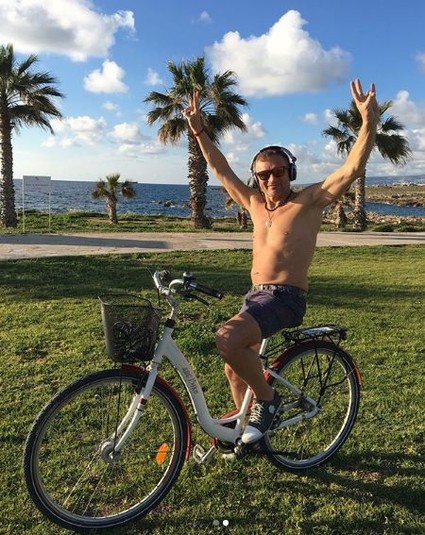 Артист выложил ряд снимков с отдыха, на которых катается на велосипеде и нежится на солнце