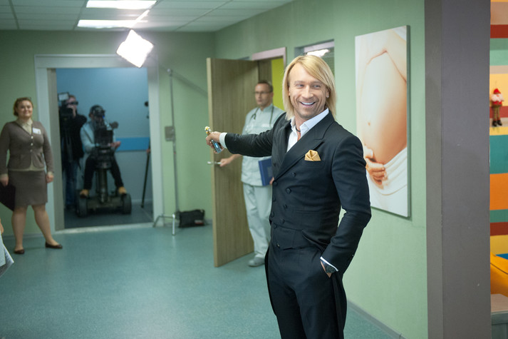 Так, в поисках новогодней сцены певец случайно оказывается в съемочном павильоне сериала «Женский доктор», где ему буквально самому пришлось «принимать роды» у женщины.