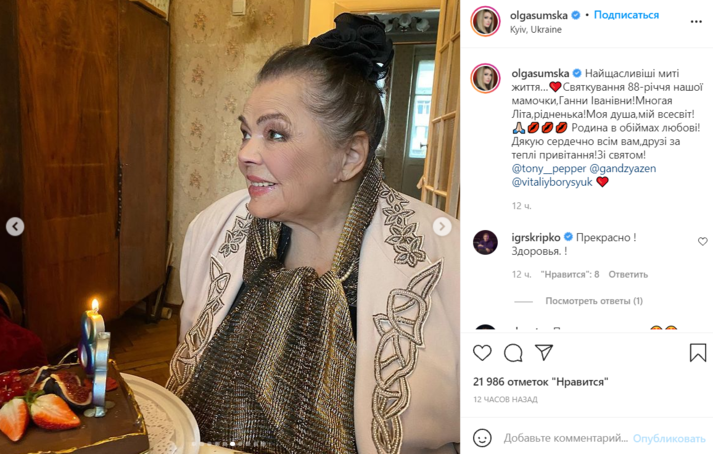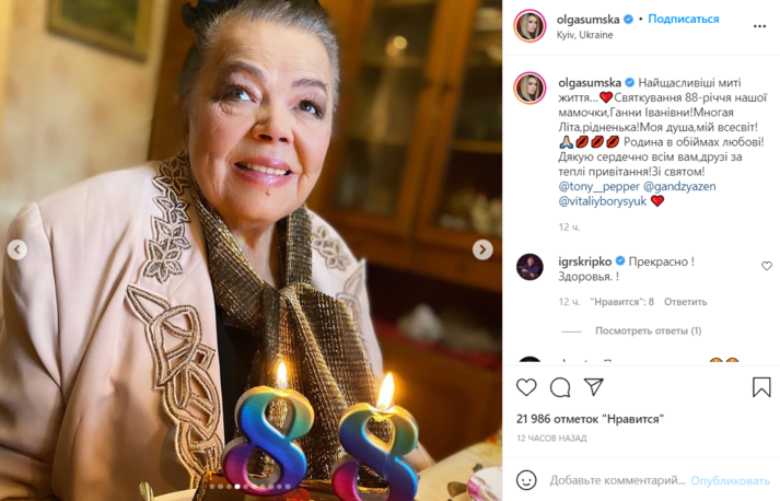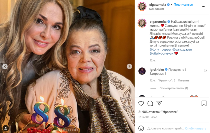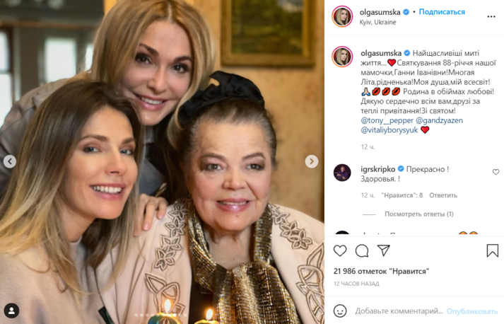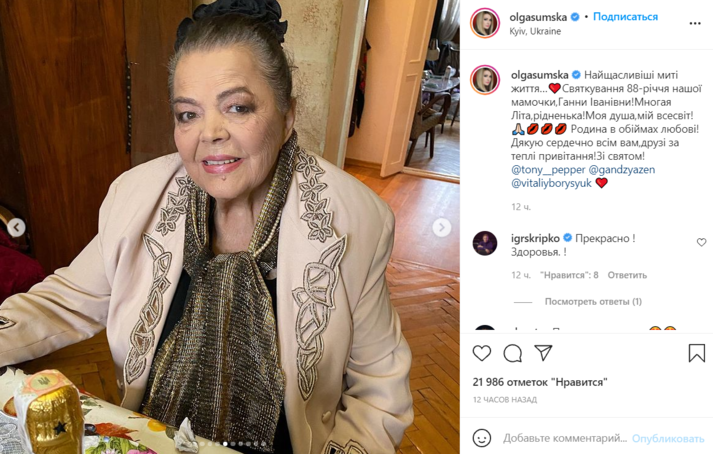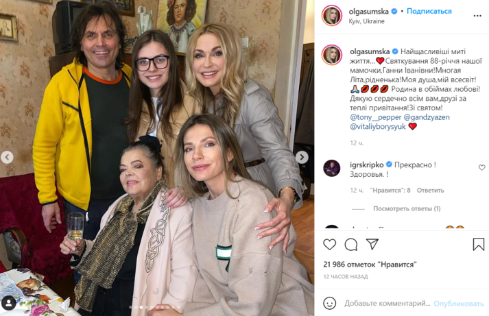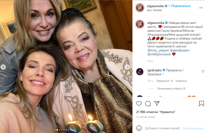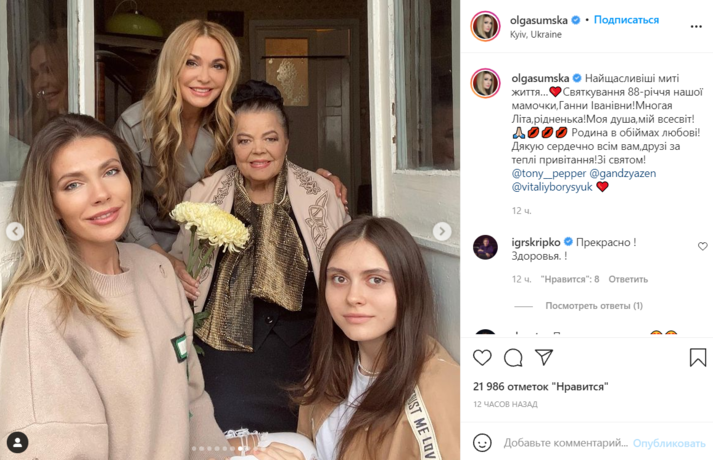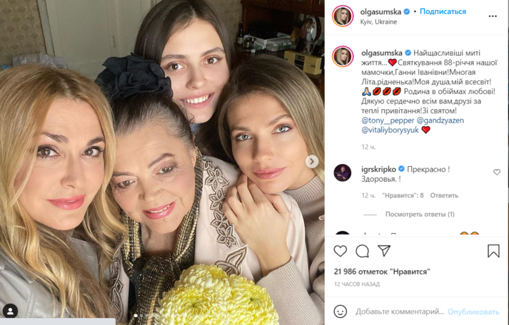 На фотографиях, которые актриса опубликовала в своем Инстаграме, она изображена вместе с мамой, дочерьми и мужем. Все собрались, чтобы поздравить родную с теплым праздником. Антонина Паперная, Анна Борисюк и Виталий Борисюк приехали с Сумской, чтобы отметить 88-летие Анны Ивановны.
