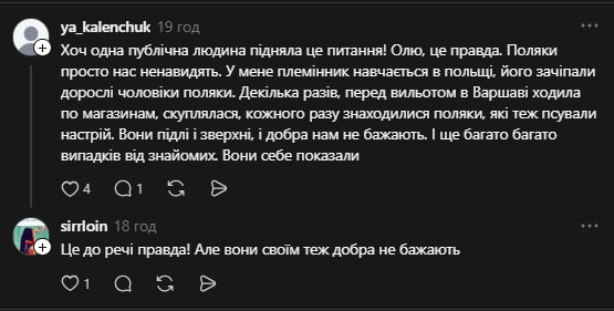 У коментарях під дописом співачки українці погодилися з нею та поділилися власним досвідом перетину кордону з Польщею. За словами українців, вони неодноразово зіштовхувалися з грубістю у свою сторону від поляків.