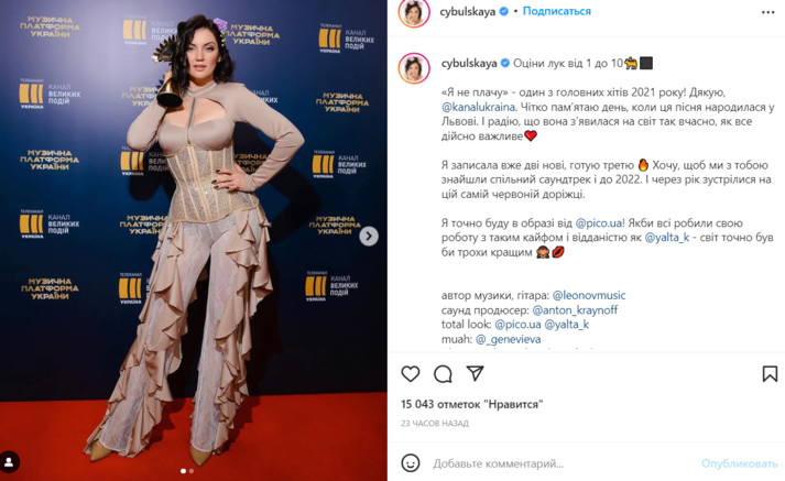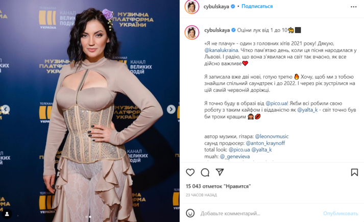 Популярная украинская певица Ольга Цибульская в своем Инстаграме опубликовала два фото, на которых позирует в бежевой блузе с декольте и корсетом, а также в бежевых прозрачных облегающих брюках с рюшами по бокам. В сети раскритиковали наряд певицы.