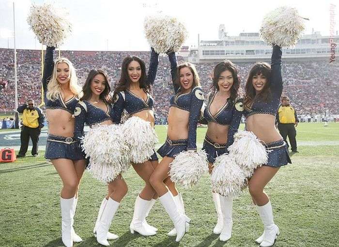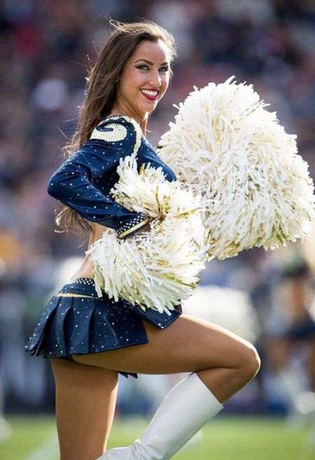 Знакомьтесь, это американская чирлидерша Шелби Ковач, которая вместе со своими напарницами заводит публику на матчах клуба по американскому футболу «Лос-Анджелес Рэмс».