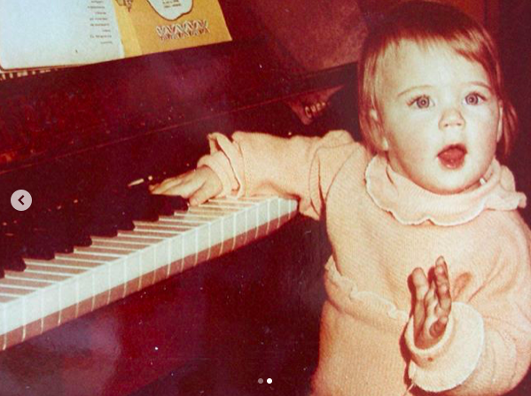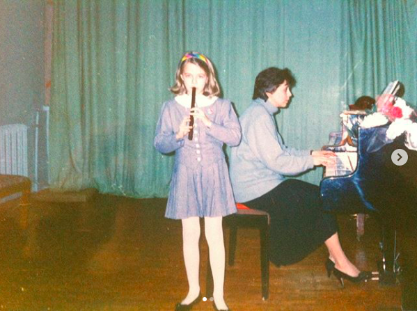 Подписчики отметили, что первое фото, где певица играет на музыкальном инструменте свирели, а на втором - совсем маленькая сидит возле пианино.