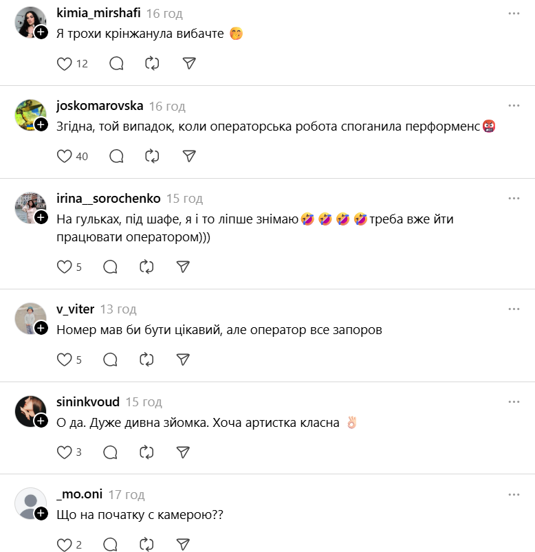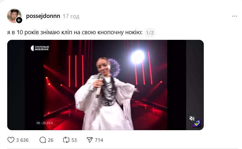 Користувачі соцмережі Threads звернули увагу на незвичний стиль зйомки виступу Leléka. Хоча дехто й зауважує, що такий прийом вже не вперше використовується на Євробаченні. Сподобався цей задум не всім.
