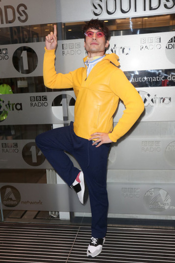 Музыкант выбирает яркие цветастые костюмы и накидки Gucci в паре со слипонам, украшенными геометрическим принтом и контрастными носками как в повседневной жизни, так и на красную ковровую дорожку.