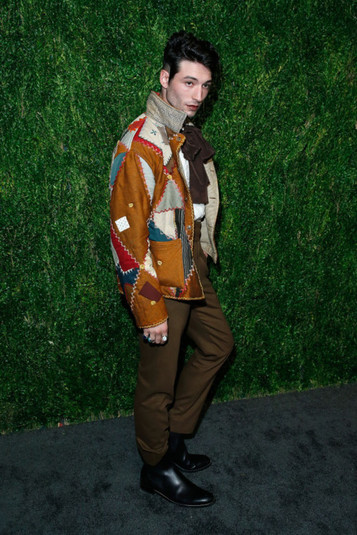 Так, в числе модников эксцентричный актер Эзра Миллер. На премьеру фильма «Фантастические твари: Преступления Грин-де-Вальда» актер пришел в пуховике-платье из совместной коллекции Moncler x Pierpaolo Piccioli, накрасив губы помадой глубокого черничного цвета.
