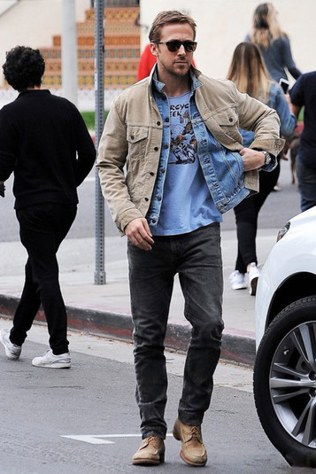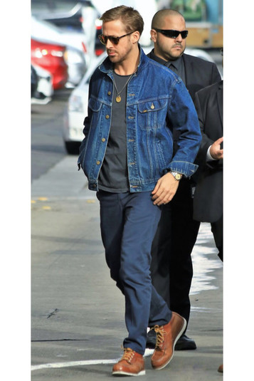 Канадский актер Райан Гослинг, известный по фильмам "Ла-Ла Ленд" и "Дневник памяти" на красную ковровую дорожку выбирает классические строгие костюмы, а также может надеть идеальный смокинг. В повседневной жизни актер предпочитает классическому пиджаку потертые джинсовки, белой рубашке – вязанный свитер с различными узорами, а на смену туфлям приходят удобные ботинки Red Wing.