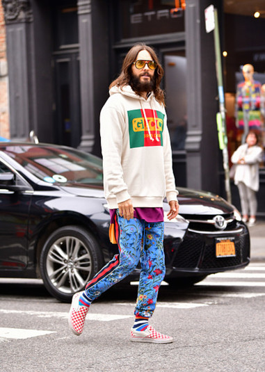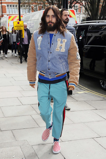 Джаред Лето – амбассадор бренда Gucci и близкий друг Алессандро Микеле является поклонником экцентричных и неординарных сочений цветов, форм и фактур итальянского бренда.