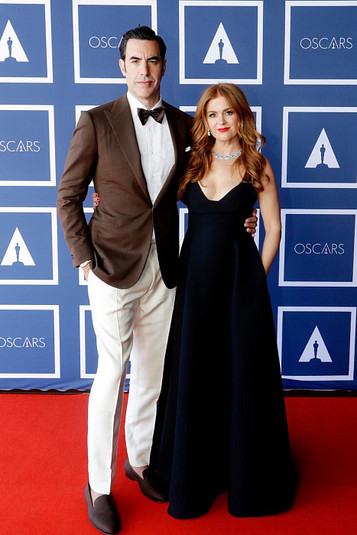 Айла Фишер трогательно чистила костюм своего мужа Саши Барона Коэна перед тем, как выйти к фотографам, собравшимся для освещения события в Сиднее (в этом году трансляция шла из разных точек планеты).