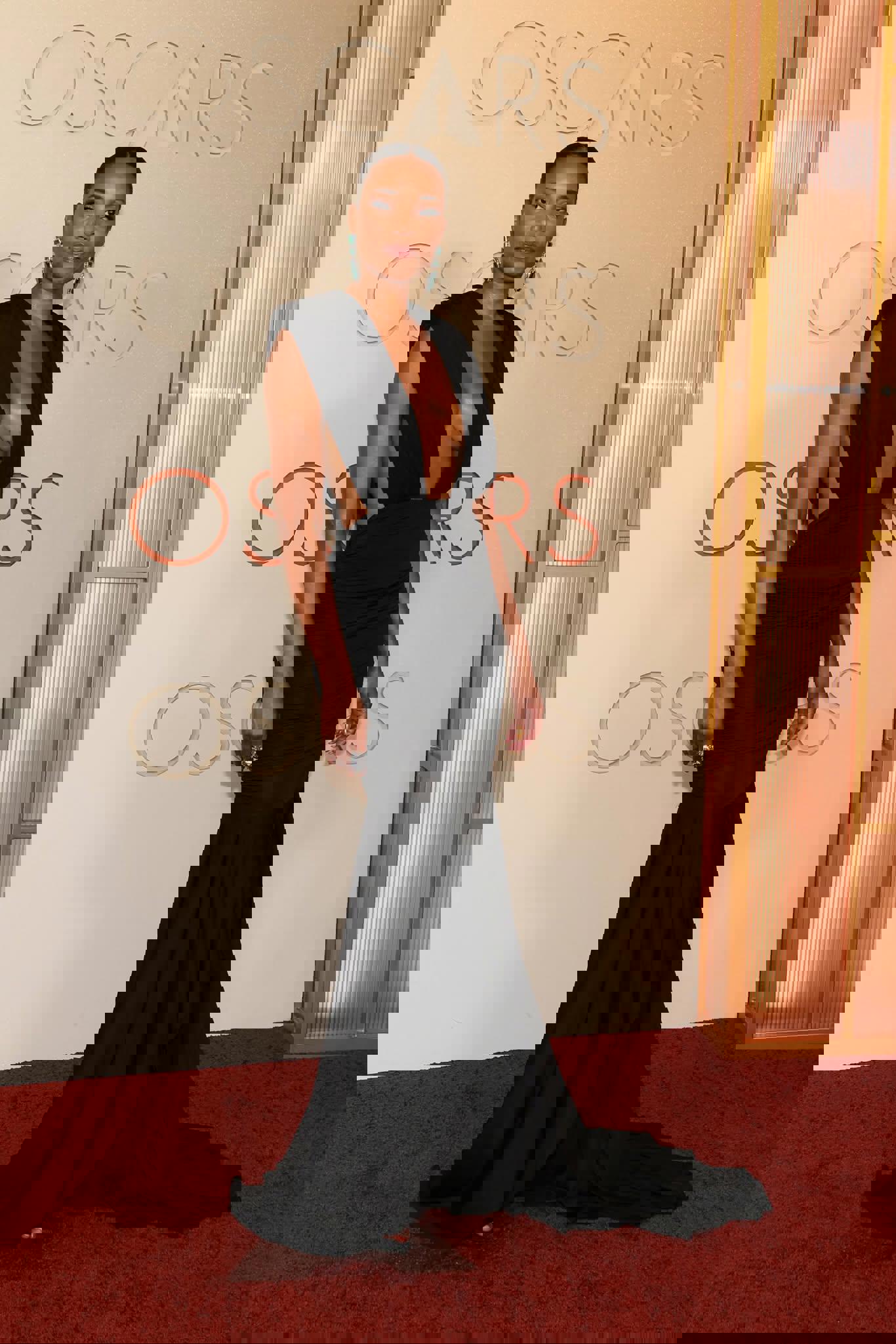 Акторка Реджина Голл з’явилася у чорно-золотій сукні асиметричного крою з металізованим корсетом і довгою спідницею зі шліцом.