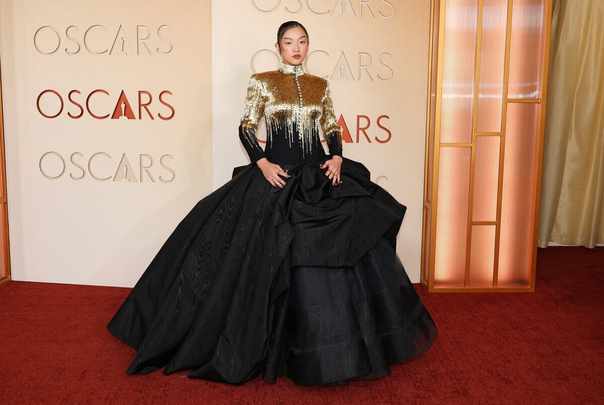 Співачка, номінована на «Оскар» у категорії «Найкраща оригінальна пісня» за композицію Golden із фільму KPop Demon Hunters, з’явилася на червоній доріжці у золотій сукні. Її наряд був густо прикрашений декоративними елементами та мав драпірований ліф із чорними квітковими деталями на плечі та стегні. Шлейф сукні розширювався донизу і завершувався довгими бахромчастими панелями.