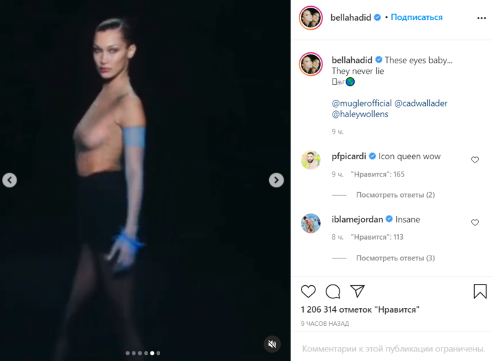 Американская супермодель палестинского происхождения Белла Хадид, которую ранее признали самой красивой женщиной в мире, снялась в откровенном образе с обнаженной грудью. Снимок появился в Instagram-сторис дизайнера французского модного дома Mugler Нэма Нгайена (Nam Nguyen).