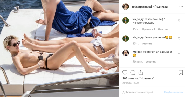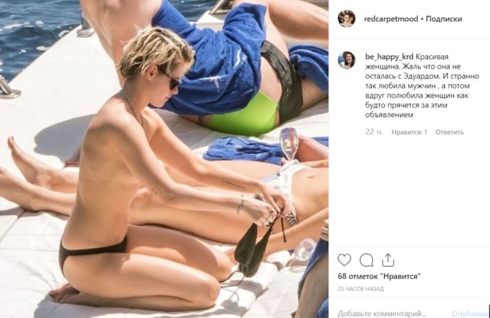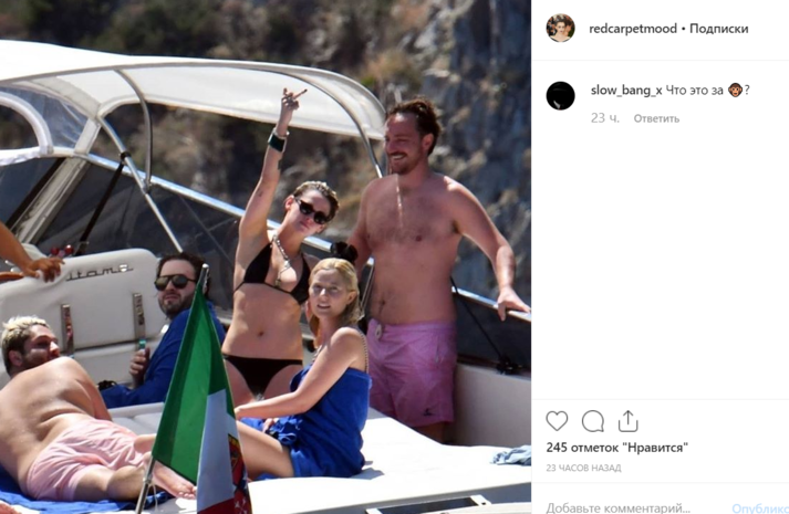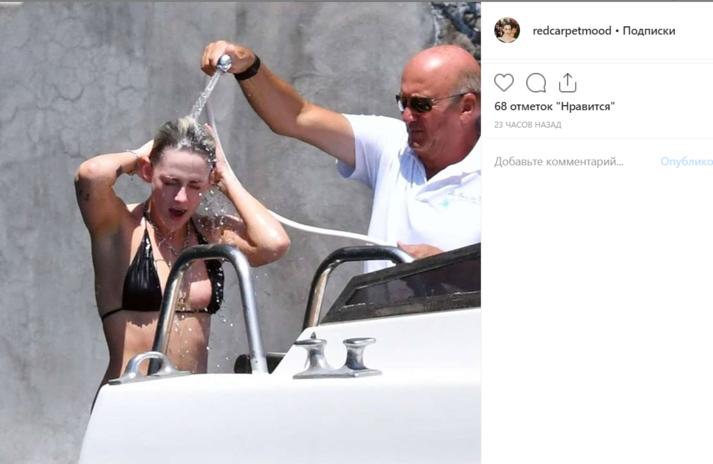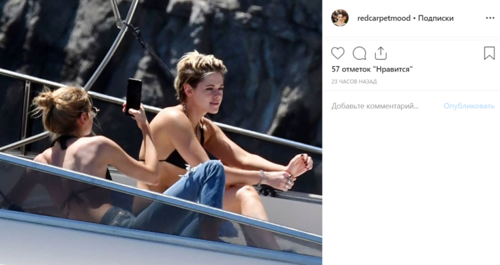 Папарацци выбрали удивительно удачный день, чтобы отправиться на морскую прогулку у берегов Италии вслед за Кристен Стюарт. Сейчас 29-летняя актриса отдыхает на Капри вместе с друзьями и своей бывшей девушкой Стеллой Максвелл, отношения с которой, похоже, все-таки возобновились после прошлогоднего расставания. В отличие от Кристен, Стелла предпочла не показывать лишний раз свою модельную фигуру, а вот Стюарт подошла к процессу загара серьезнее, избавившись от верхней части купальника.