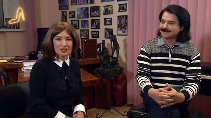 Такое приглашение получил любимец женщин Павел Зибров. По сценарию, украинского артиста пригласила на интервью начинающая журналистка, которая решила узнать, как Зибров относится к своему молодому конкуренту - Олегу Виннику.
