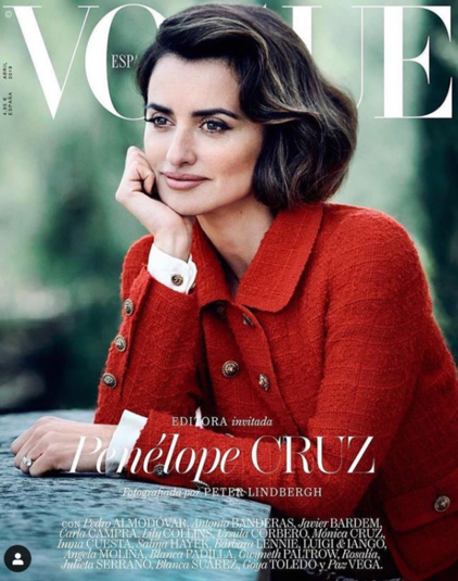 44-летняя актриса Пенелопа Крус снялась для апрельского номера испанского Vogue. Издание представило две обложки в своем официальном аккаунте в Instagram. На одной из них актриса позирует в твидовом красном пиджаке от Chanel из коллекции осень-зима 1983/1984.
